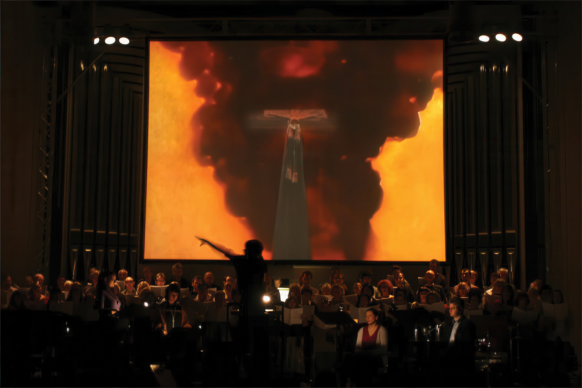 In 2009, at the Kraków Philharmonic Hall (Karol Szymanowski Philharmonic), I created large-scale multimedia projections for the oratorio concert The World of Master Beksiński, which premiered on October 23–24, 2009. I was responsible for animating and bringing to life Zdzisław Beksiński’s paintings, transforming them into dynamic visuals that accompanied live music.