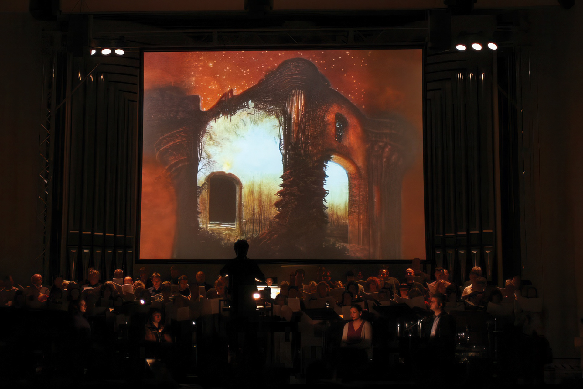 My projections created a dreamlike visual dimension that enhanced the emotional weight of the musical program—featuring Mahler’s Adagio from his 10th Symphony and Schnittke’s Requiem—intensifying the synergy between Beksiński’s imagery and the musical experience .